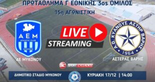 Read More »ΑΕ Μυκόνου – Αστέρας Βάρης Live Streaming