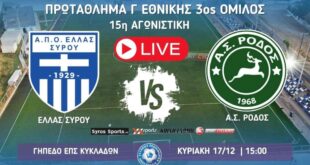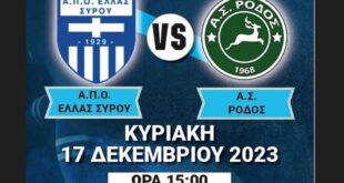 Read More »Κυριακή ο μεγάλος αγώνας Ελλάς Σύρου-Α.Σ Ρόδος