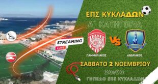 Read More »ΕΠΣ Κυκλάδων: Τα αποτελέσματα των αγώνων του Σαββατοκύριακου (26-27/10)