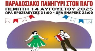 Κανονικά το πανηγύρι του Α.Ο Πάγου στις 14 Αυγούστου… Ο Α.Ο Πάγου ενημερώνει τον κόσμο σχετικά με το καθιερωμένο πανηγύρι που γίνεται στο χωριό κάθε χρόνο.. Αναλυτικά: Ενημερώνουμε  τον κόσμο της ομάδας και του νησιού, λόγω πολλών ενοχλήσεων που έχουμε δεχθεί, ότι το πανηγύρι της ομάδας και του χωριού θα …