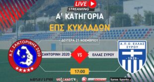 ΑΣ Σαντορίνης 2020 – Ελλάς Σύρου Live Streaming