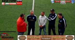 Βουτσίνος, Βασάλος, Φιλιπποπολίτης, Ραμπαβίλας, Μανου… (Βίντεο) Νίκος Βουτσίνος, Μιχάλης Βασάλος, Δημήτρης Φιλιπποπολίτης, Κυριάκος Μανουδάκης και Παναγιώτης Ραμπαβίλας μιλούν για την Ελλάς Σύρου… αμέσως μετά την ολοκλήρωση της χθεσινής φιέστας…