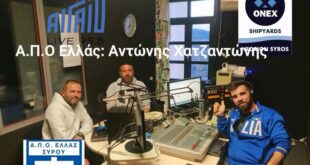 Χατζαντώνης: Για Ελλάς, ONEX, Φοίνικα και αθλητισμό… (AUDIO) Ο Ειδικός Γραμματέας της Ελλάς Σύρου κ. Αντώνης Χατζαντώνης βρέθηκε χθες καλεσμένος του Μάκη Πρίντεζη και Έλπη Φρέρη στα στούντιο του Αιγαίο Live 95.8 και της Αθλητικής εκπομπής «Στον VAR».. Ο πρόεδρος των εργαζομένων του Νεωρίου έμεινε σε όλη την εκπομπή, όπου …