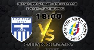 Ελλάς Σύρου – Α.Ε Πάρου Live Streaming