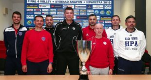 Οι προπονητές και οι αρχηγοί των 4 φιναλίστ αποφασισμένοι για το Κύπελλο Το σύνθημα για μία γιορτή του βόλεϊ στην Ιεράπετρα το διήμερο 19-20 Απριλίου έδωσαν προπονητές και αρχηγοί των 4 φιναλίστ του Κυπέλλου Ελλάδας ανδρών στην επίσημη συνέντευξη Τύπου της διοργάνωσης, που πραγματοποιήθηκε την Πέμπτη 18/4 στο Δημαρχείο Ιεράπετρας. …