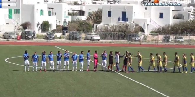 Κακή εμφάνιση του Α.Ο Σύρου στη Μύκονο, που στο παιχνίδι της χρονιάς, έδειξε να μην έχει τον παίκτη που θα κάνει την διαφορά και θα δώσει την «χρυσή νίκη » στην ομάδα.. Η ομάδα του Νίκου Βουτσίνου αναδείχτηκε ισόπαλη 0-0 στο γήπεδο του Κόρφου απέναντι στον αδιάφορο Α.Ο Μυκόνου, χάνοντας την μεγάλη ευκαιρία να διεκδικήσει την πρώτη θέση στο παιχνίδι με την Άνω Μερά την τελευταία αγωνιστική.