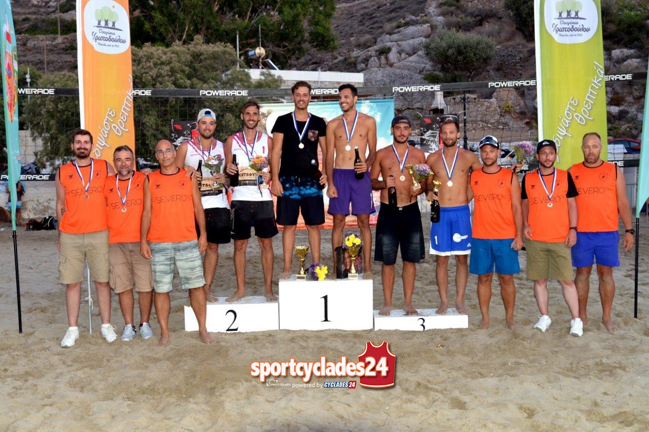 Πραγματοποιώντας εκπληκτικές εμφανίσεις η δυάδα του Βαγγέλη Τσινού και Βενέδικτου Πολίτη κατάκτησαν το τρόπαιο της πρώτης θέσης στο 70 Βαθμολογούμενο τουρνουά Beach Volley στην Βάρη της Σύρου.