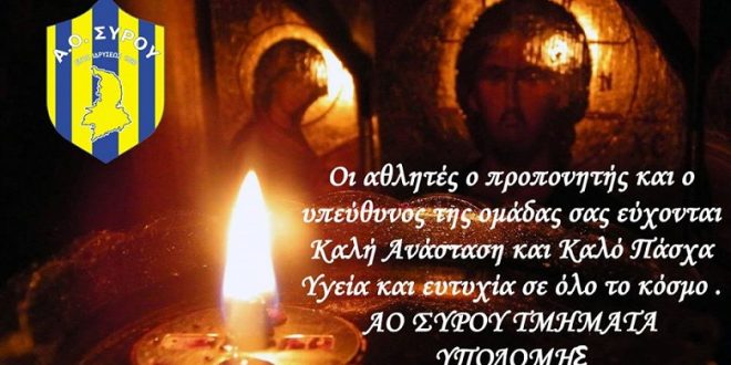 Χρόνια Πολλά και Καλή Ανάσταση από τα τμήματα Υποδομών του Α.Ο Σύρου…